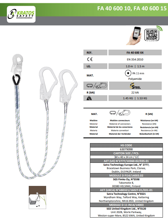- Normconformiteit: Deze lijn voldoet aan de norm EN354:2010, wat betekent dat het voldoet aan de hoogste veiligheidsnormen en geschikt is voor professioneel gebruik.