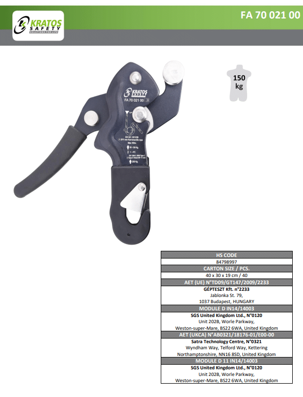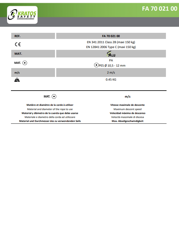– Volgens de norm EN341: 2011-2B / EN 12841: 2006 Type C