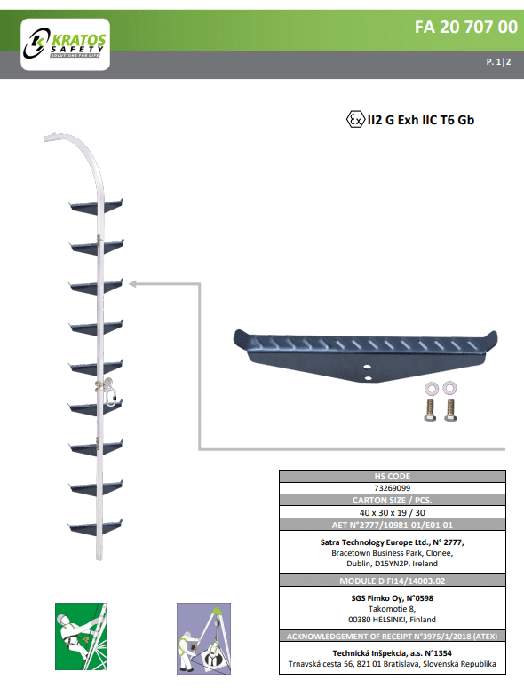 Gegalvaniseerde stalen laddersporten voor bevestiging aan de aluminium rail, met gegroefd oppervlak om stabiliteit voor de operator te garanderen. Geleverd met 2 sluitingen.
