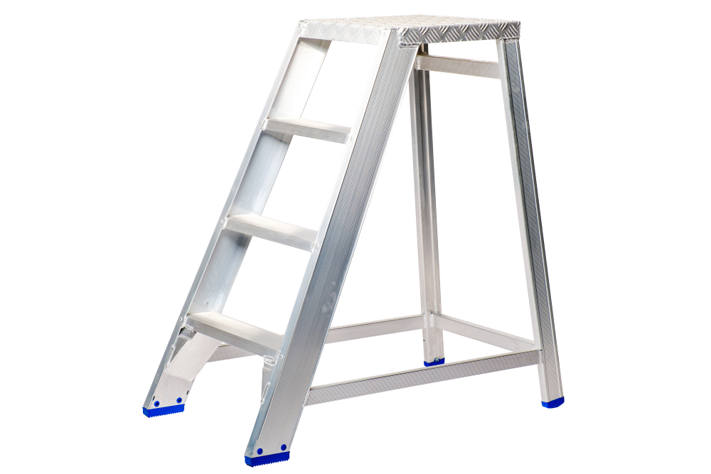 Platform van Traanplaat: Het platform van de trap is vervaardigd van hoogwaardig traanplaat, met een afmeting van 40 x 40 cm. Dit biedt een ruim en stabiel oppervlak om op te staan, wat essentieel is voor comfortabel en veilig werken op hoogte.