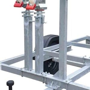 De set bestaat uit twee beugels die eenvoudig in twee rolsteigerframes worden gehangen. Vervolgens kunnen de platformen en schoren van de steiger in het raamwerk worden geschoven, waardoor een veilige en stabiele transportoplossing ontstaat.